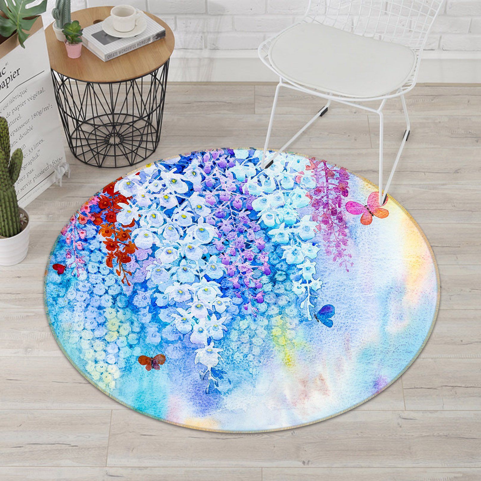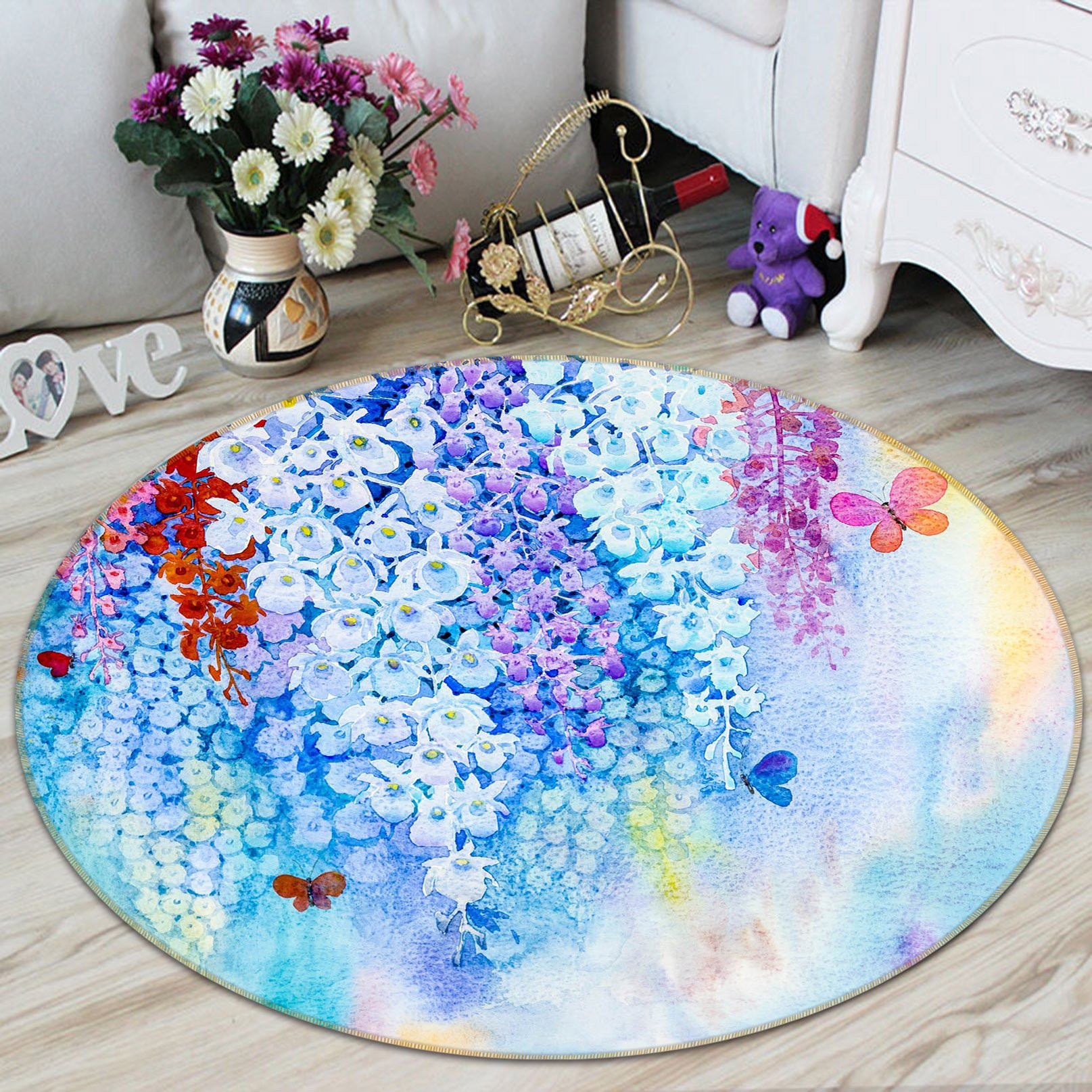 Light And Dark Blue Flower Vine Round Rug Home Decor