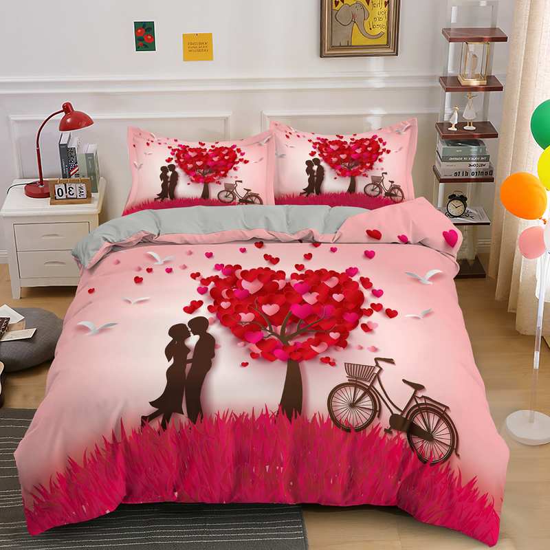 Love Heart Duvet Cover Luxury Couples Printed Bedding Set Single Full Quilt Covers Bedclothes Euro Size Home Decoration