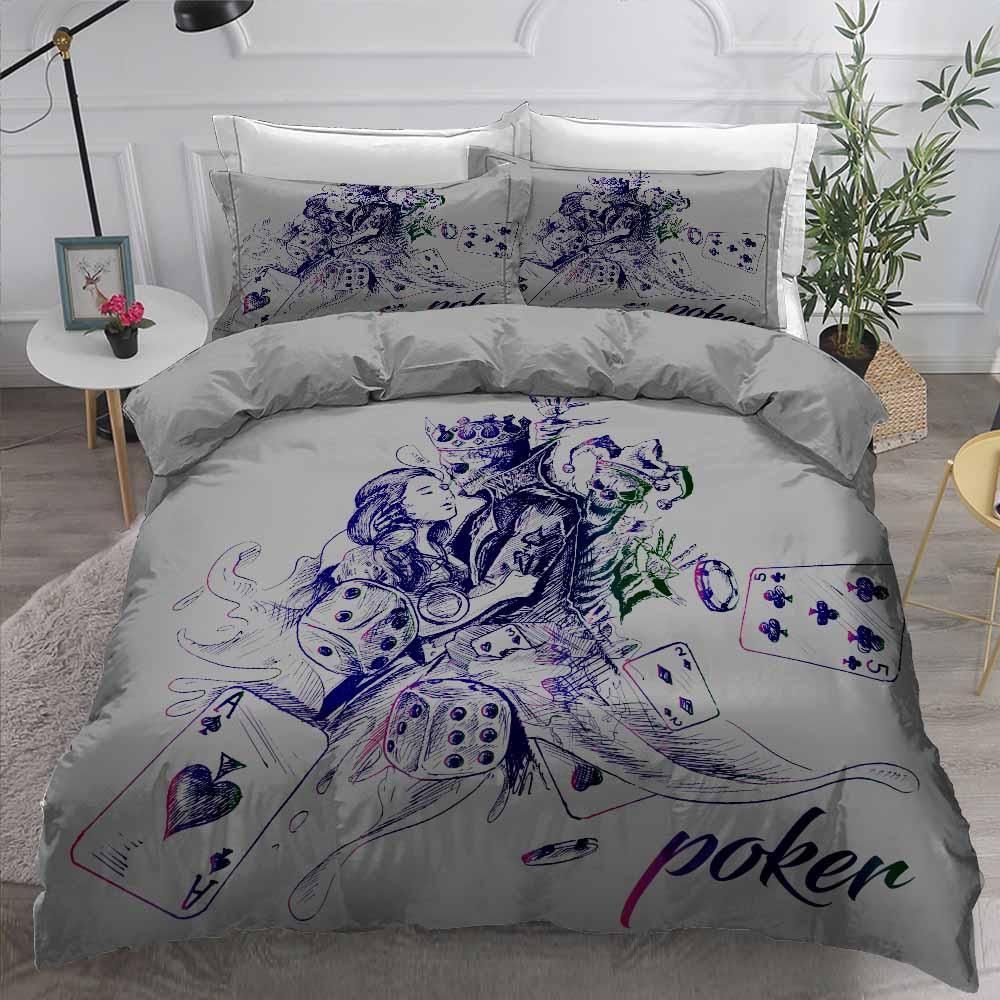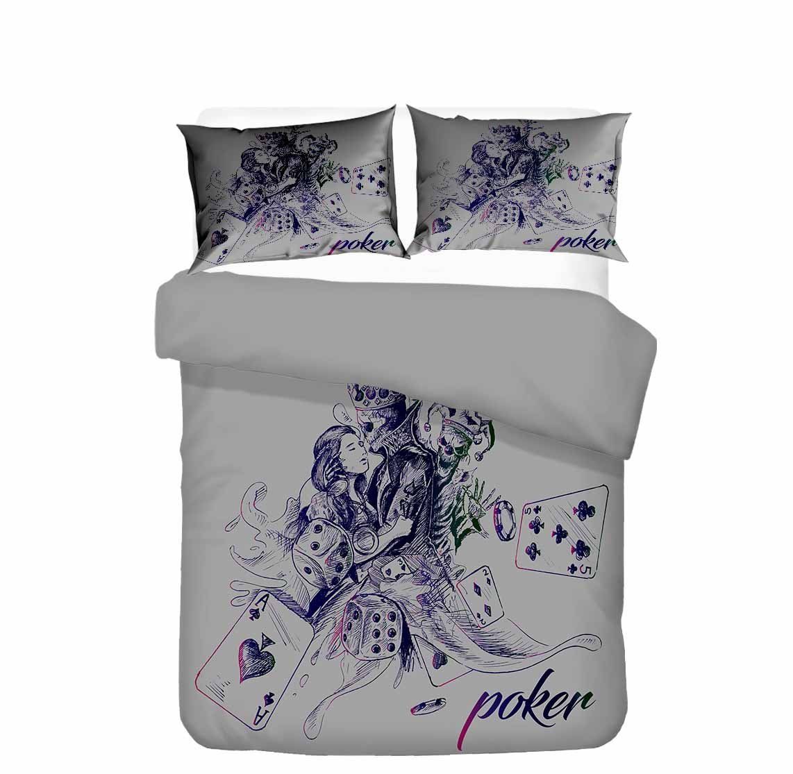 Loving King Skull And Queen Poker 3D Printed Bedding Set Home Decor