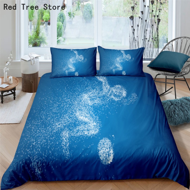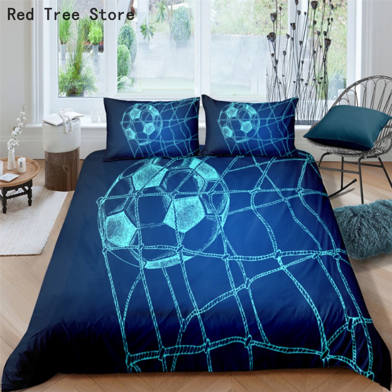 Luxury Blue Football Player Printed Bedding Set Queen King Size Quilt Pillowcase Sports Custom Duvet Cover Home Decor Bed S