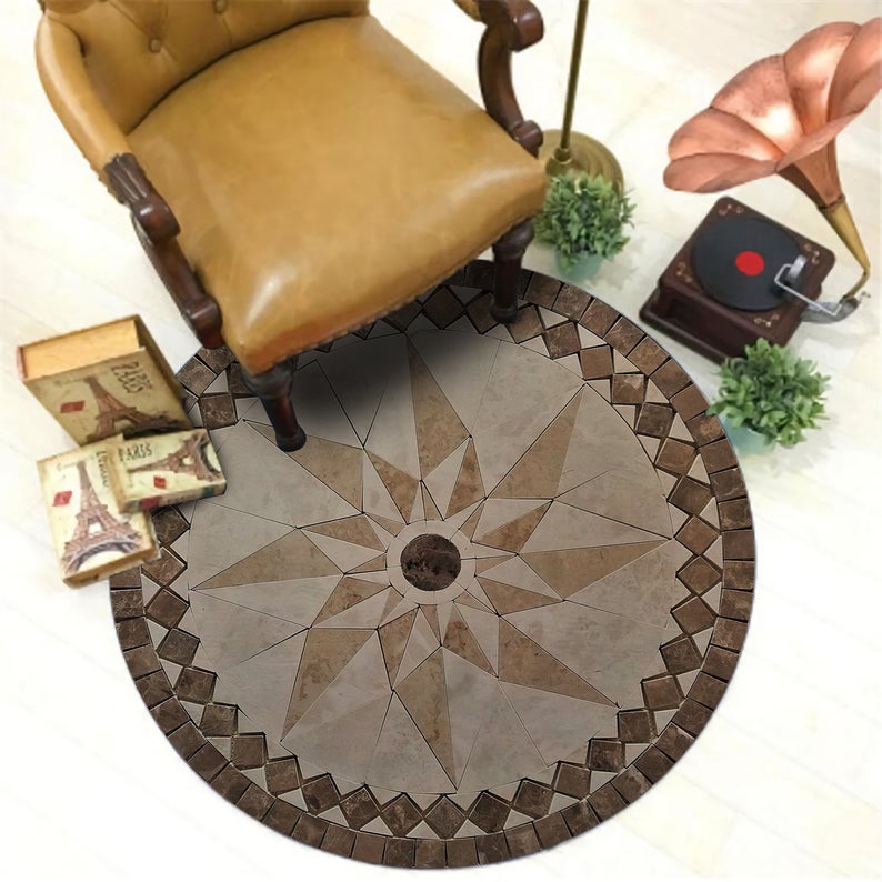 Medallion Rug, Marble Looking Non-Slip Rug, Compass Medallion Rug, Floor Area Rug, Home Décor, Housewarming Gift, Luxury Floor Area Carpet