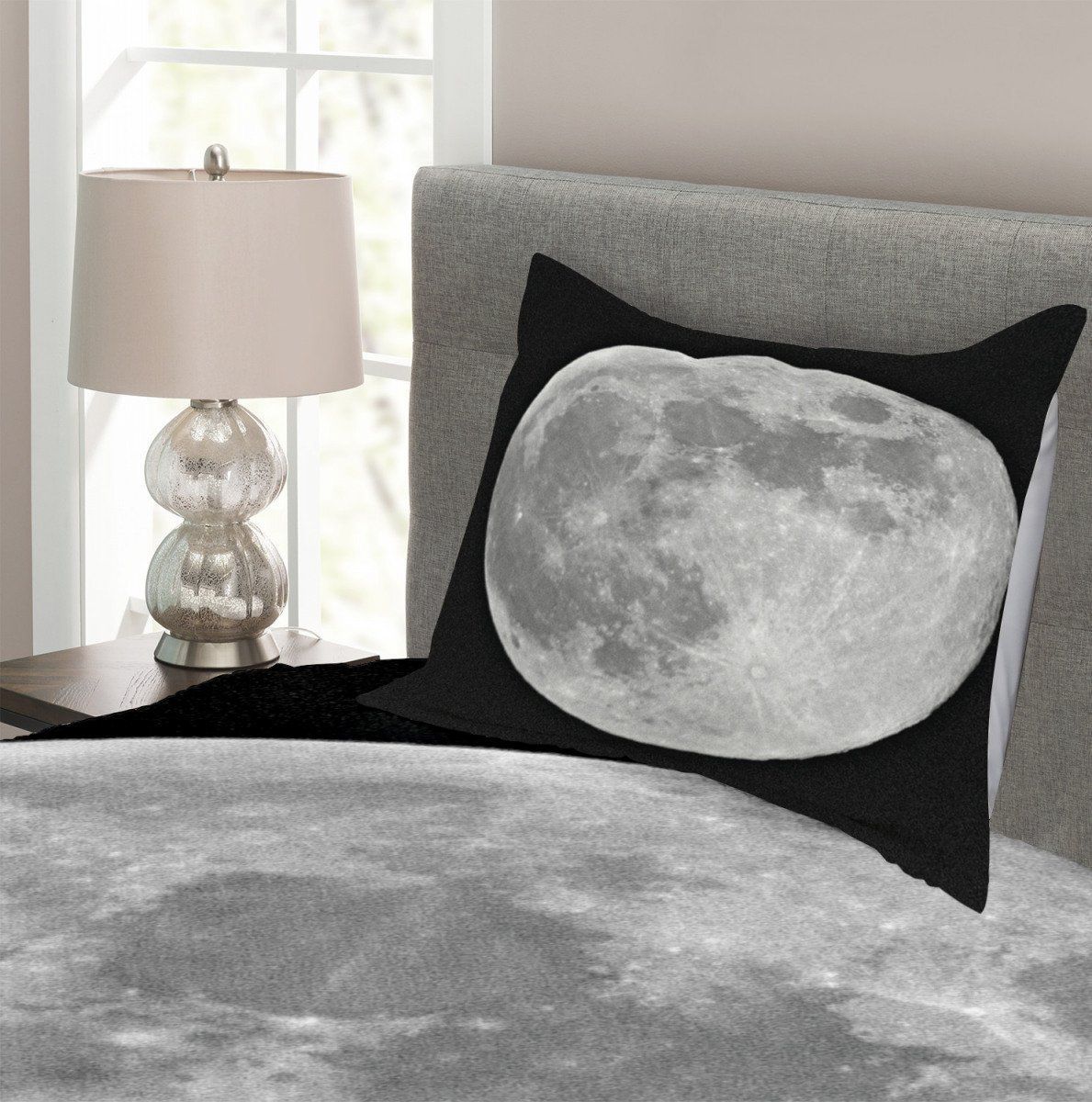 Monochrome Full Moon Art Printed Bedspread Set Home Decor