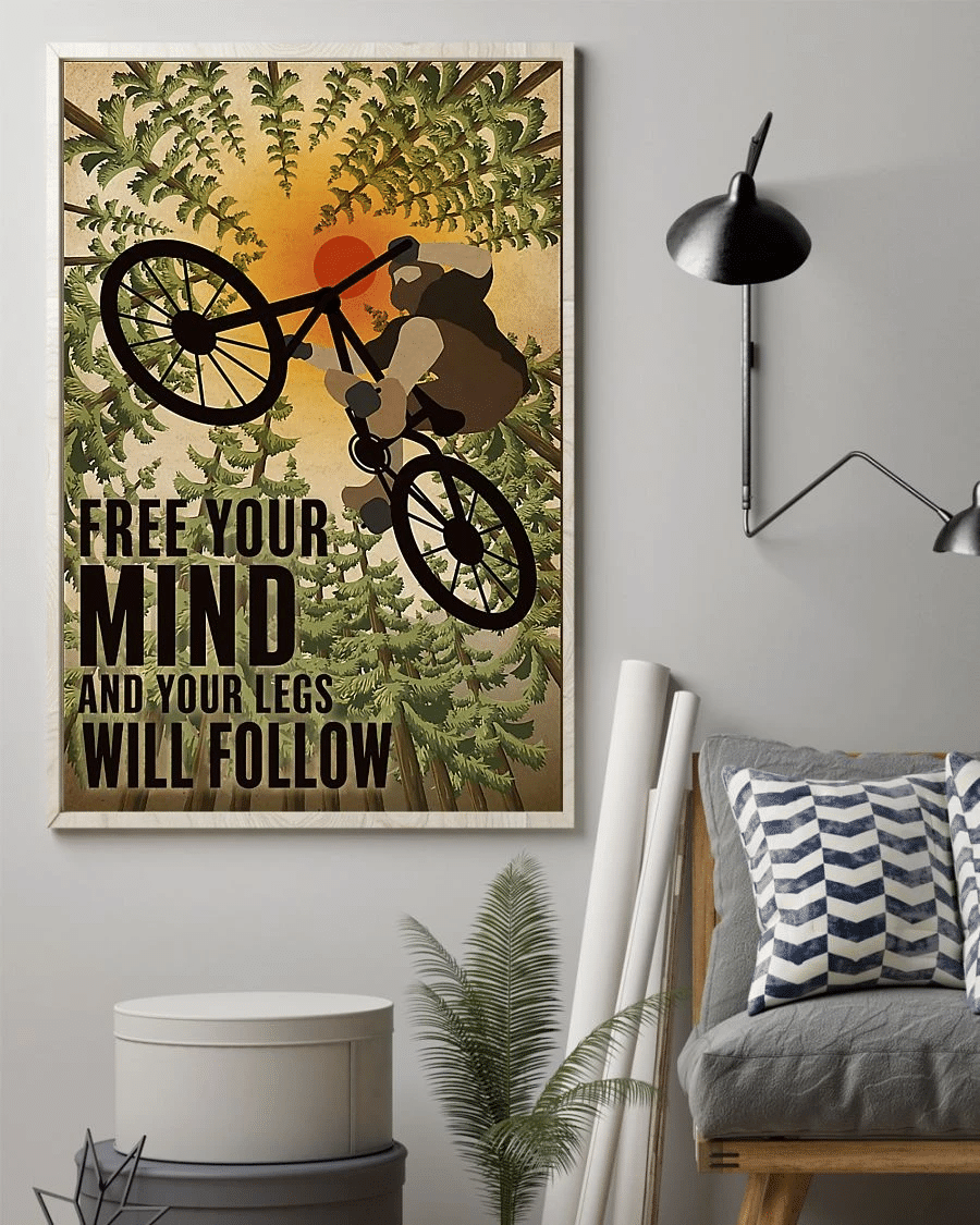 Mountain Biking Poster Canvas – Free Your Mind And Your Legs Will Follow Vintage Home Decor Wall Art Evg80485