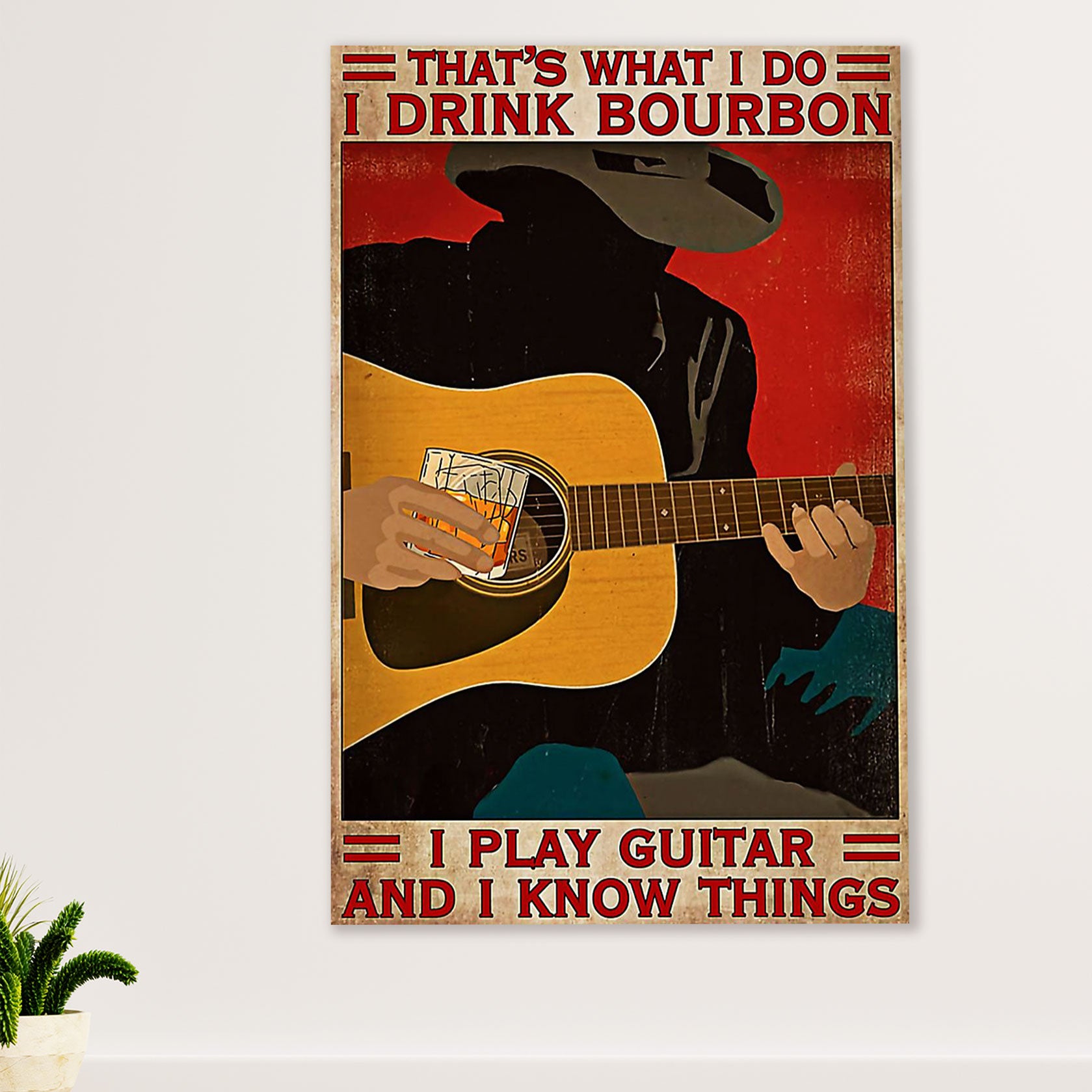 Music Guitar Canvas Wall Art Prints | Drink Bourbon, Play Guitar & Know Things | Home Décor Gift For Guitarist