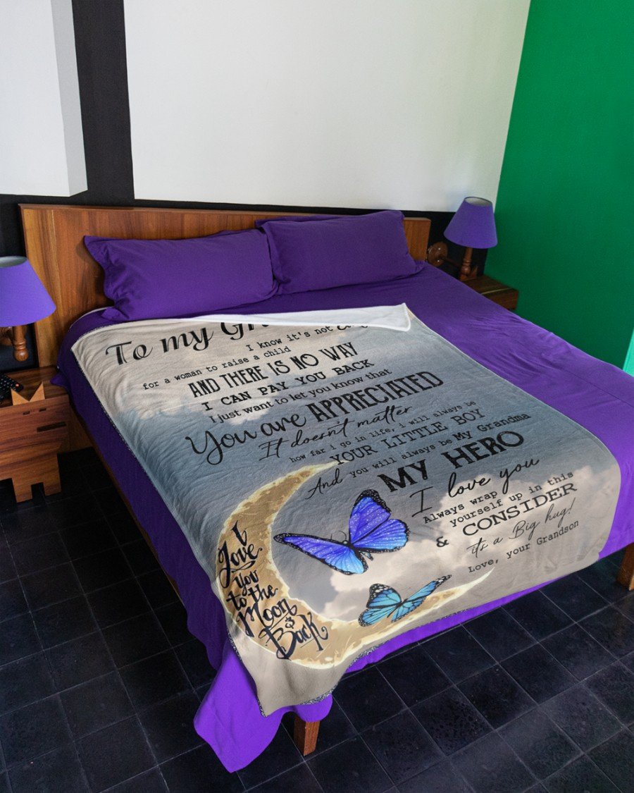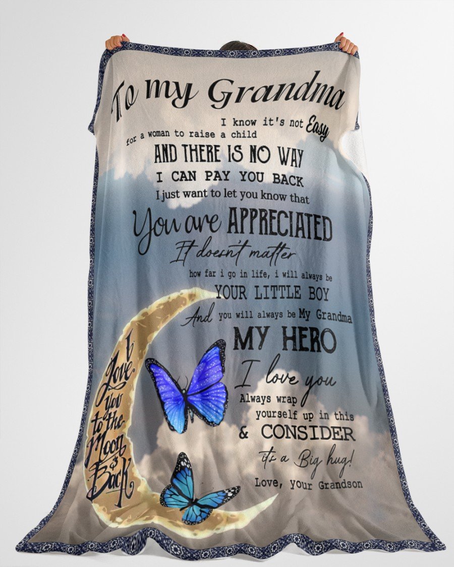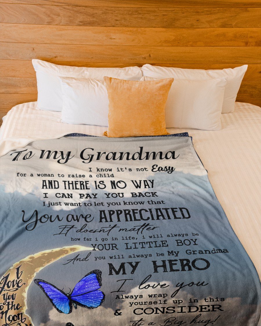 My Grandma My Hero Fleece Blanket – Quilt Blanket, Happy Mother’s Day Ideas, Mother’s Day Gift From Grandson To Grandma, Home Decor Bedding Couch Sofa Soft and Comfy Cozy