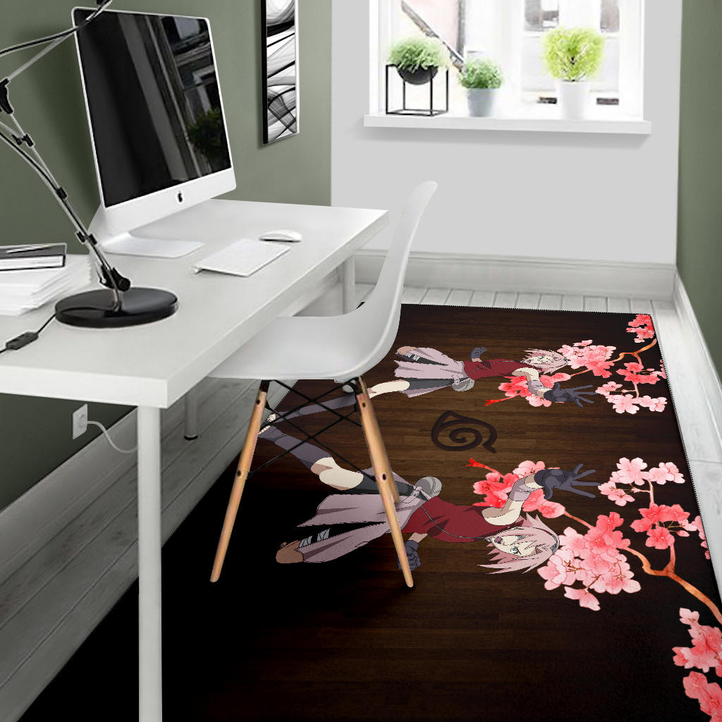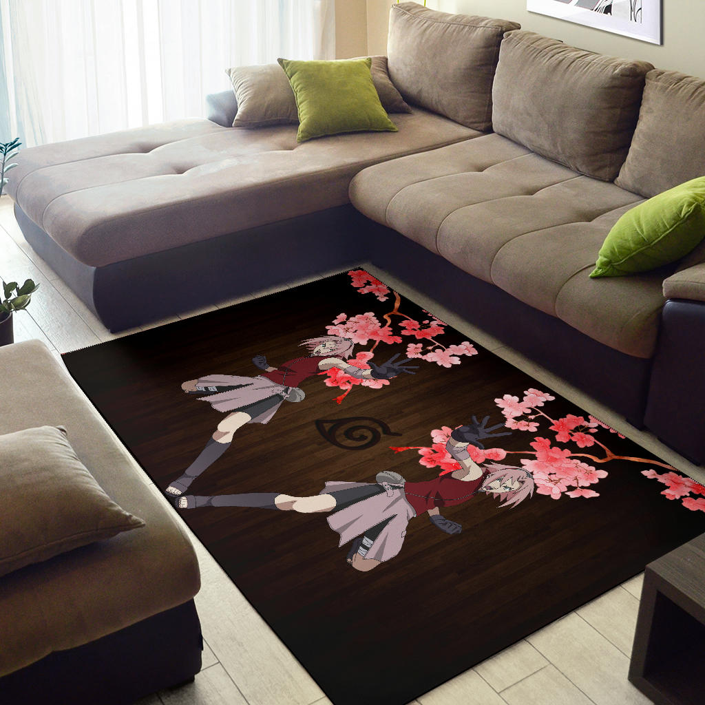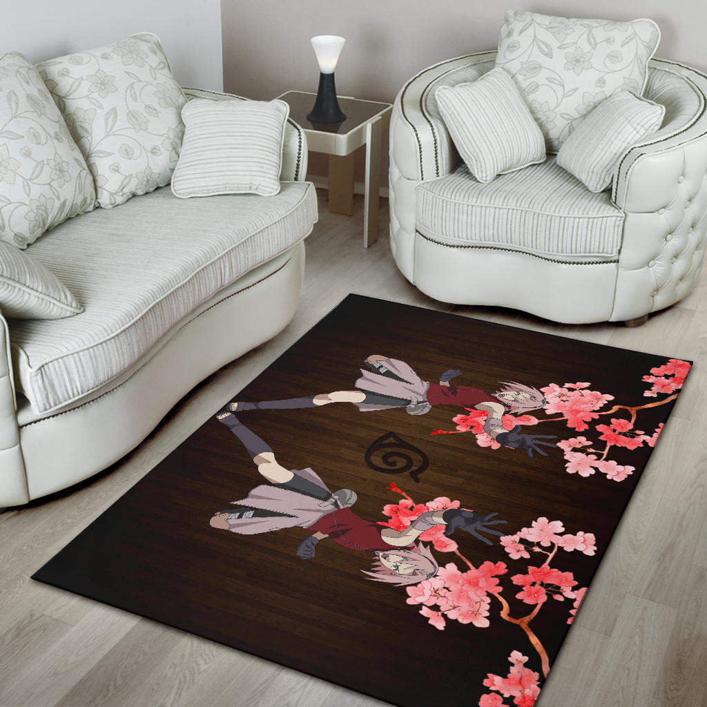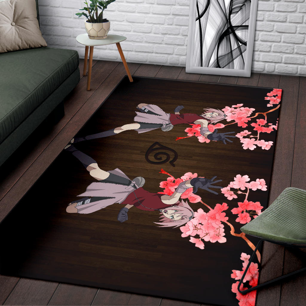 Style: Rug - Naruto Anime Area Rug - Sakura Punch Cherry Blossom Konoha Symbol Rugs Home Decor NA101904