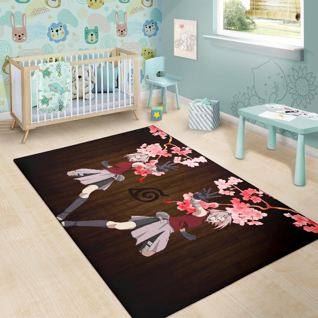 Naruto Anime Area Rug – Sakura Punch Cherry Blossom Konoha Symbol Rugs Home Decor