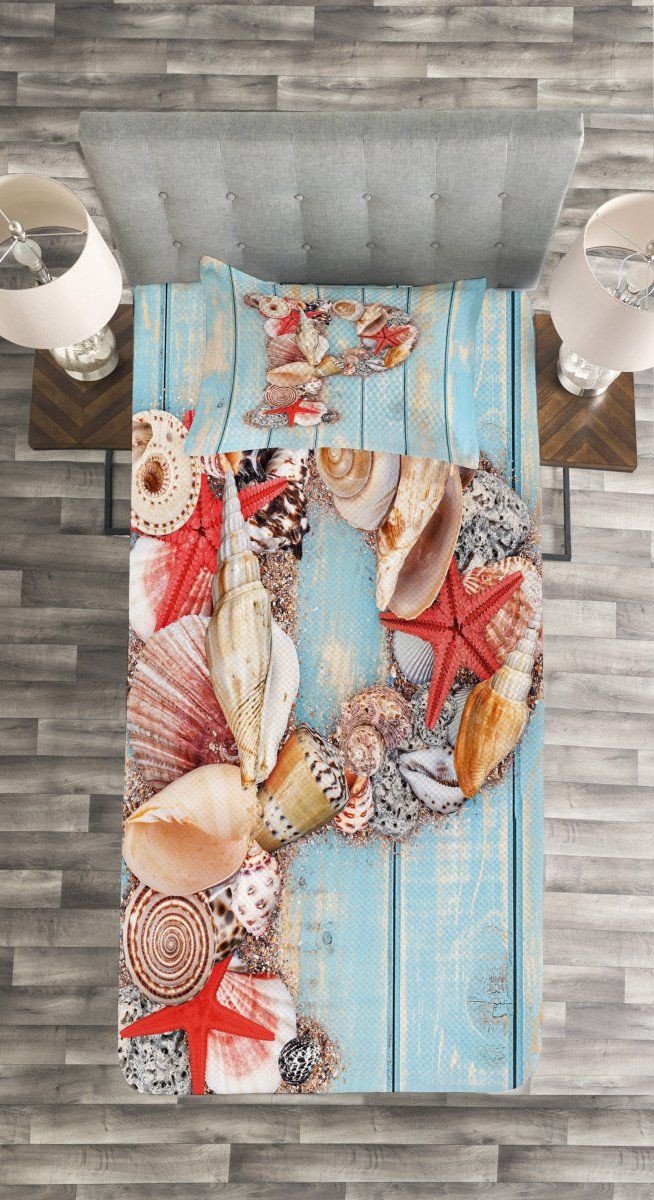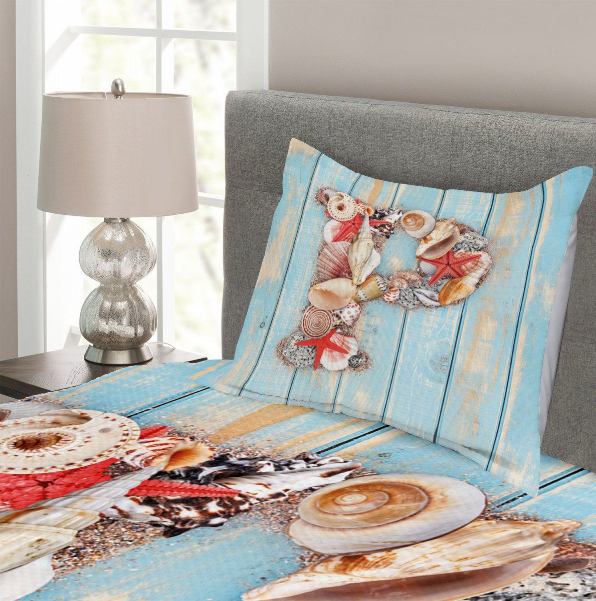 Ocean Elements P Letter Printed Bedspread Set Home Decor