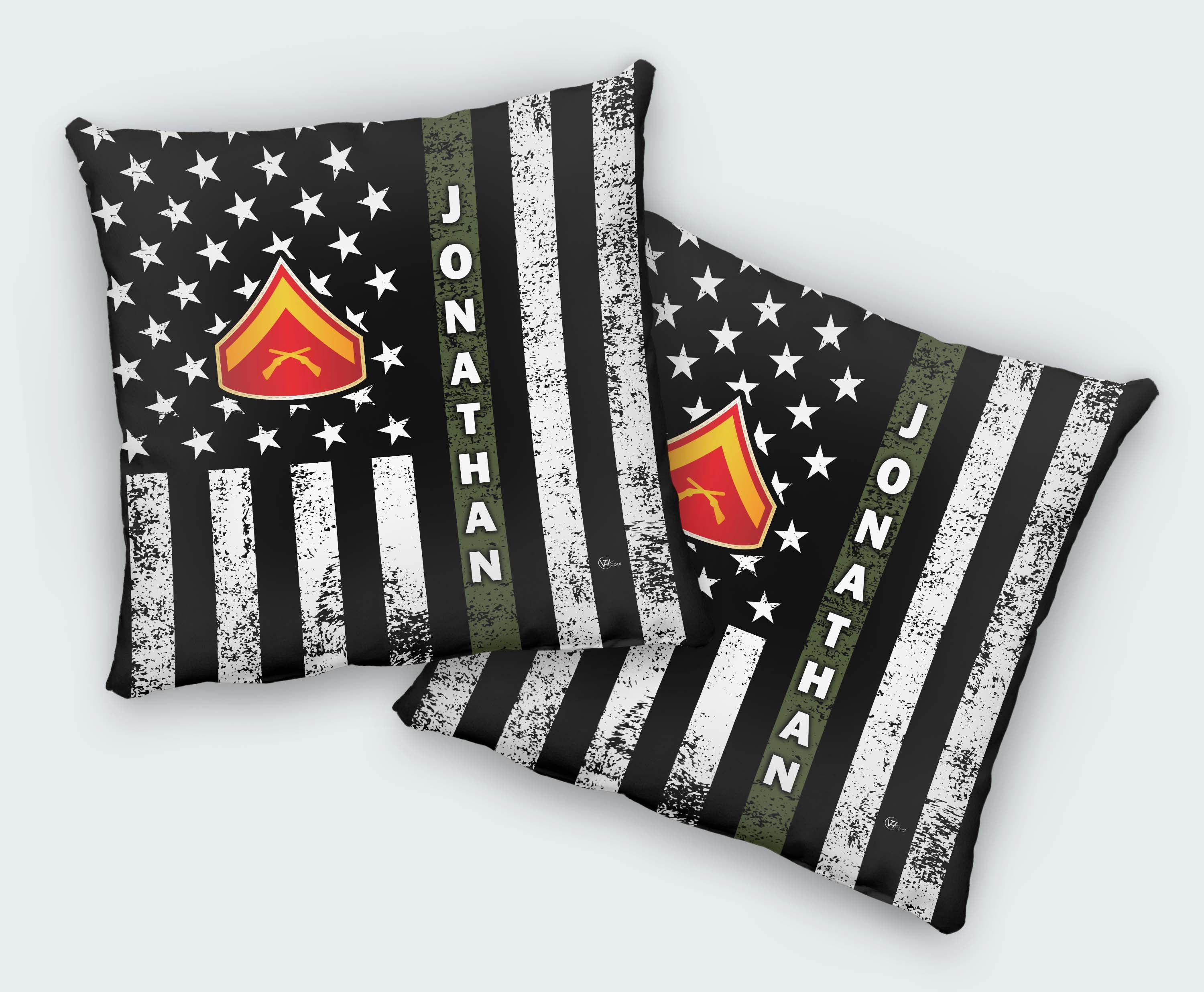 Personalized Name Rank United States US Marine Corps Soldier Military USMC Veteran Throw Pillow Home Decor