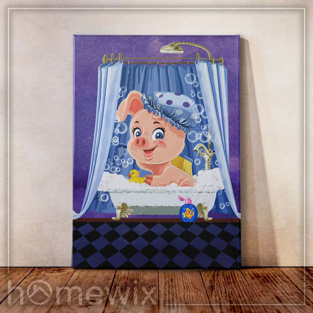 Pig In A Bathtub Bathroom Home Decor Canvas And Poster | Wall Decor
