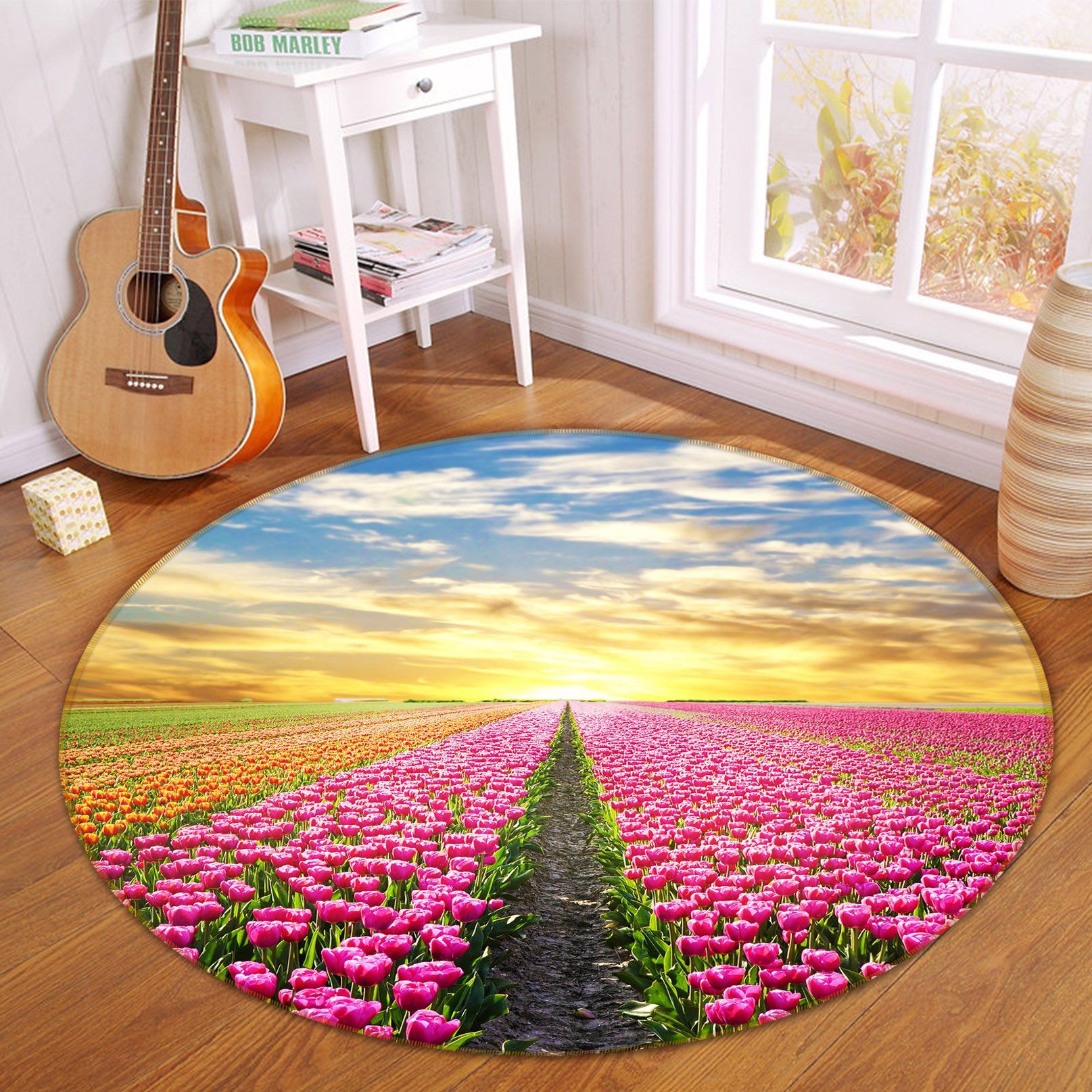 Pink And Yellow Tulips At The Sunset Round Rug – Round Carpet Home Decor