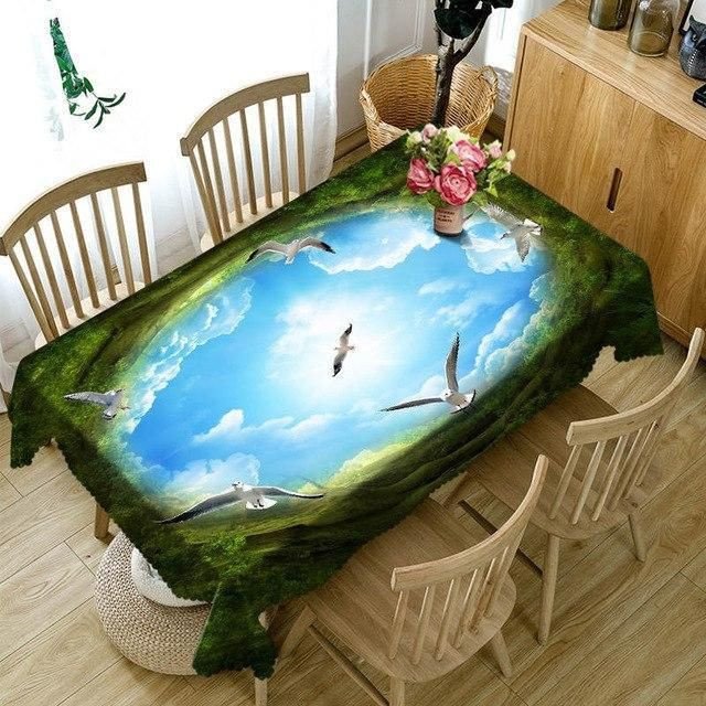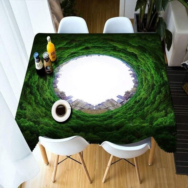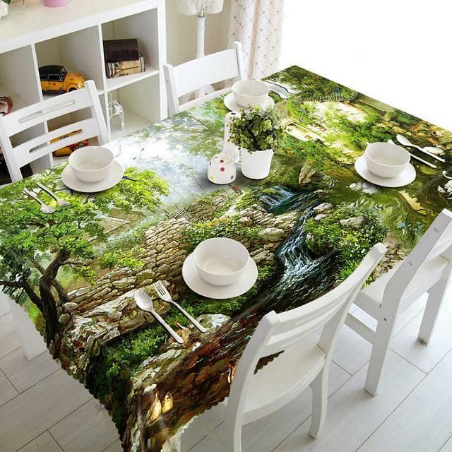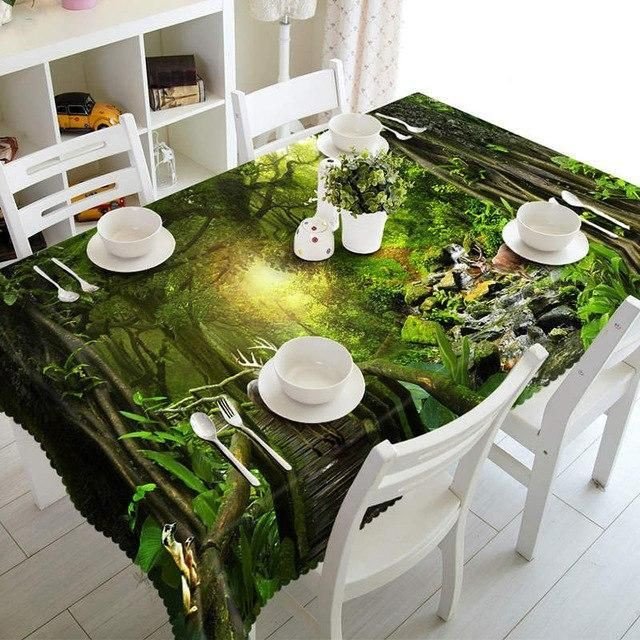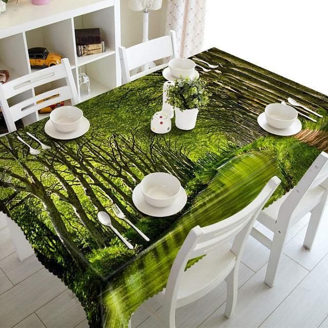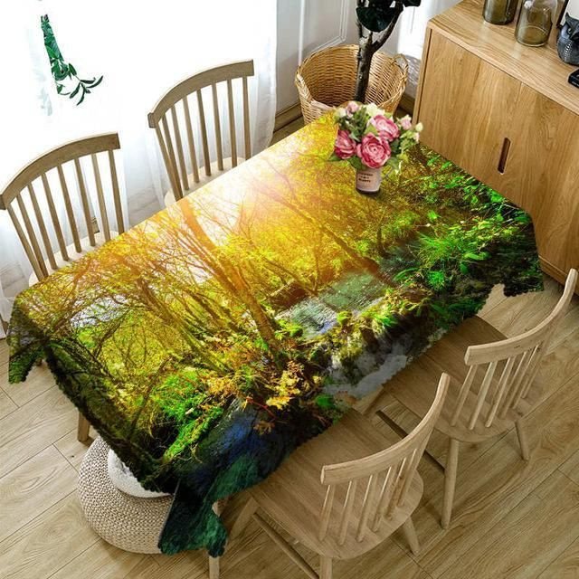 Rectangular 3d Tablecloth Green Forest Sunlight Printed Tablecloth Home Decor