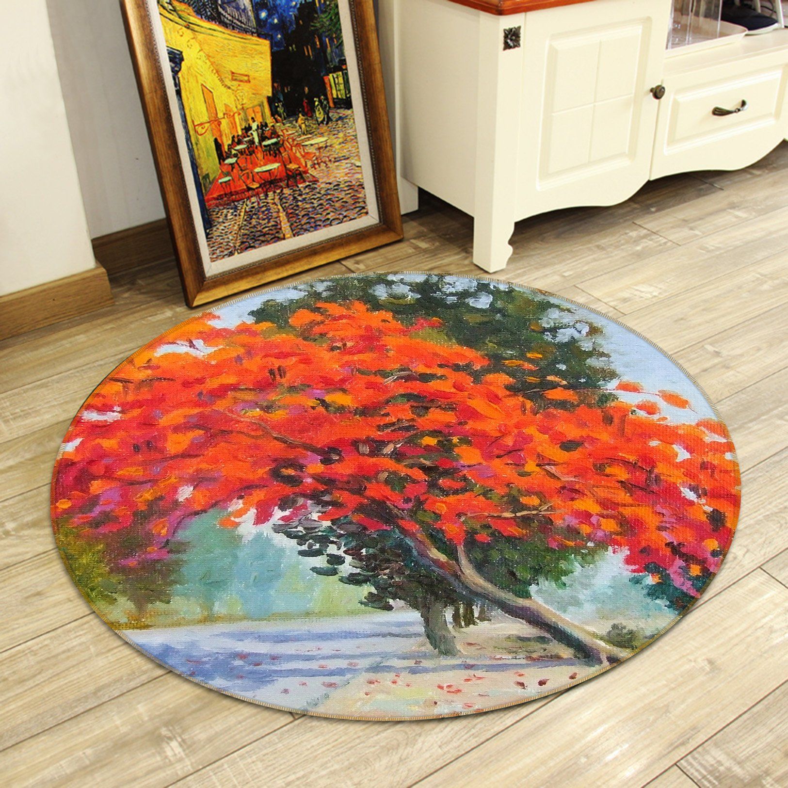 Red Leaf Tree Round Rug – Round Carpet Home Decor
