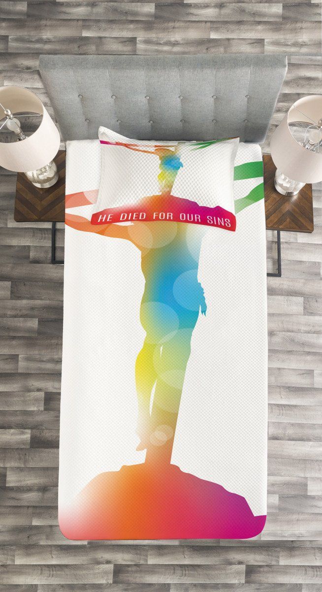Scenery With A Message Color Printed Bedspread Set Home Decor