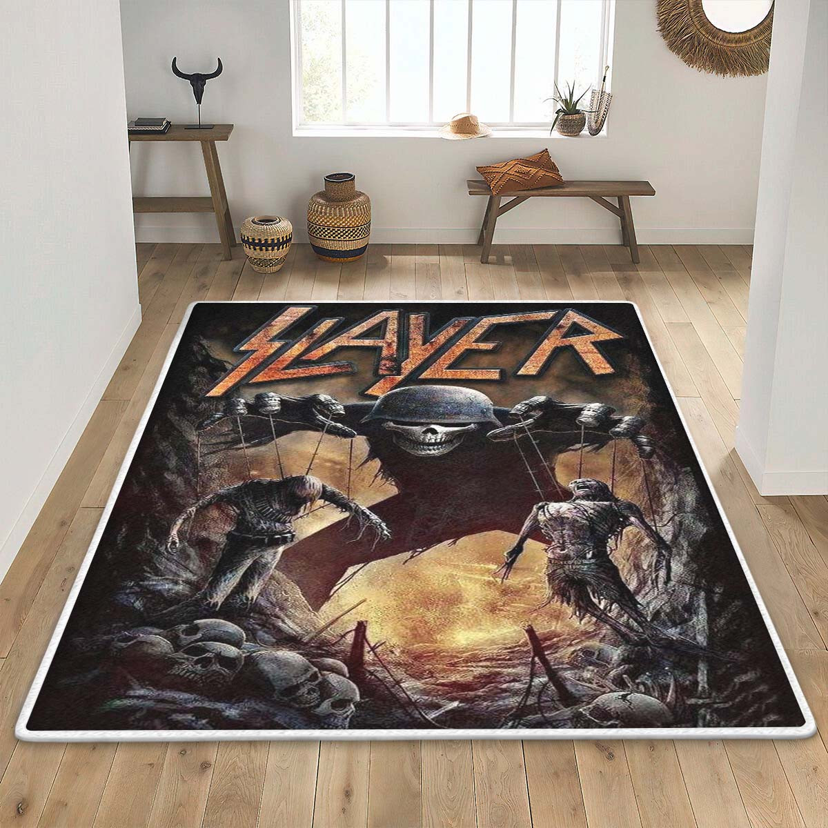 Slayer Music Band Skeleton Area Rug Living Room, Slayer Rug Home Decor Floor Decor