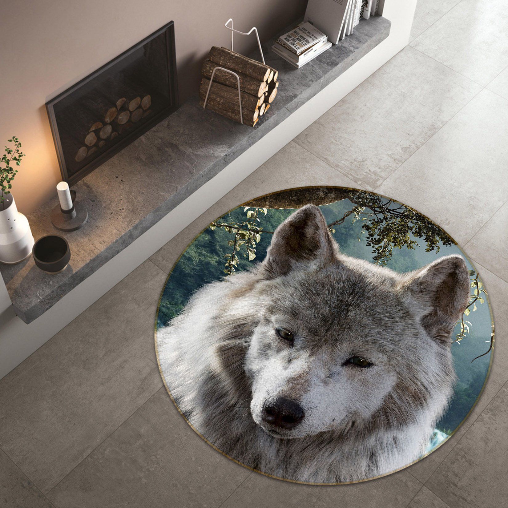 Sleepy Wolf Face Round Rug Home Decor