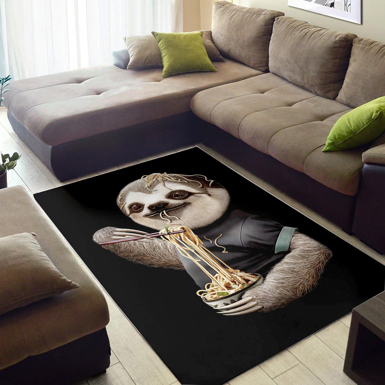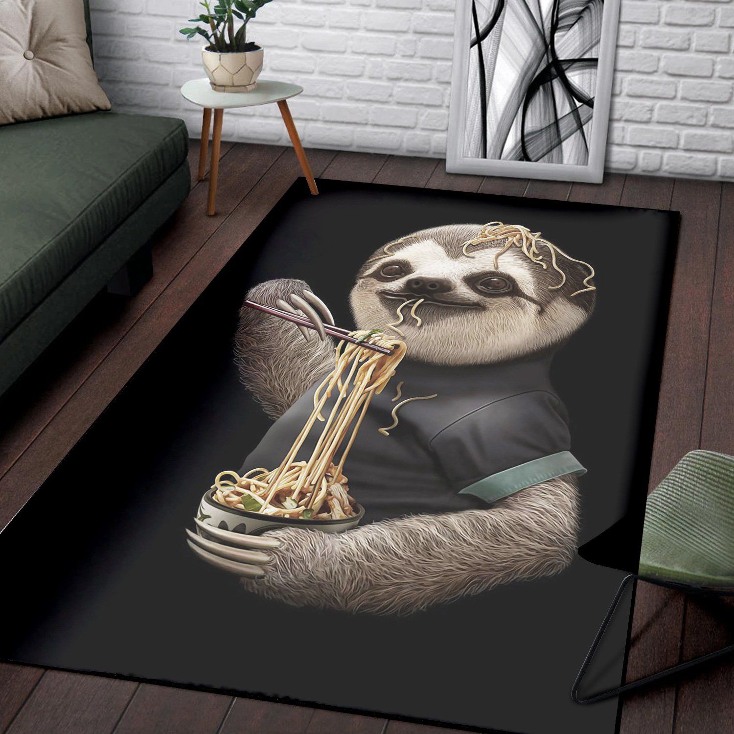 Sloth Eat Noodle Black Area Rug Carpet Living Room Rug Home Decor Floor Decor