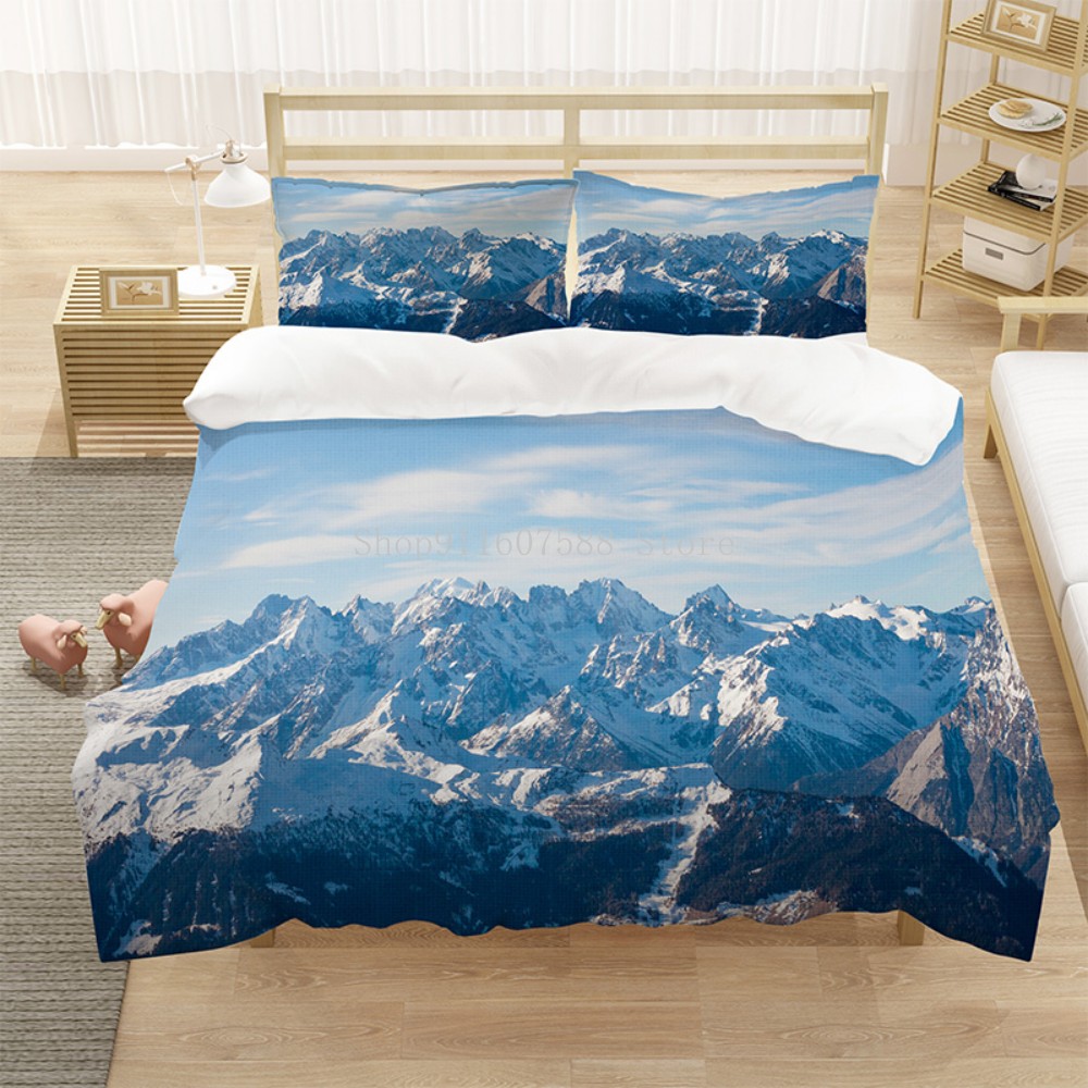 Snow Mountain Bedding Set Scenery Lake Bed Quilt Duvet Cover Sets Home Decor Twin Single Queen King Size Fashion Tree Sky Cloud
