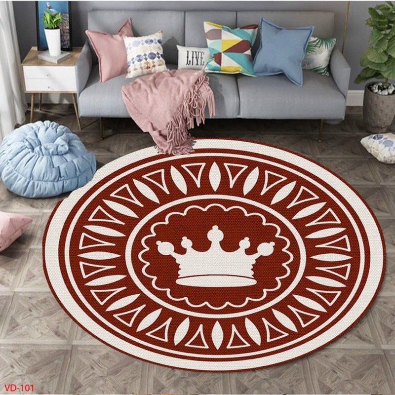 The Crown Pattern Red Burgundy White Round Rug Home Decor