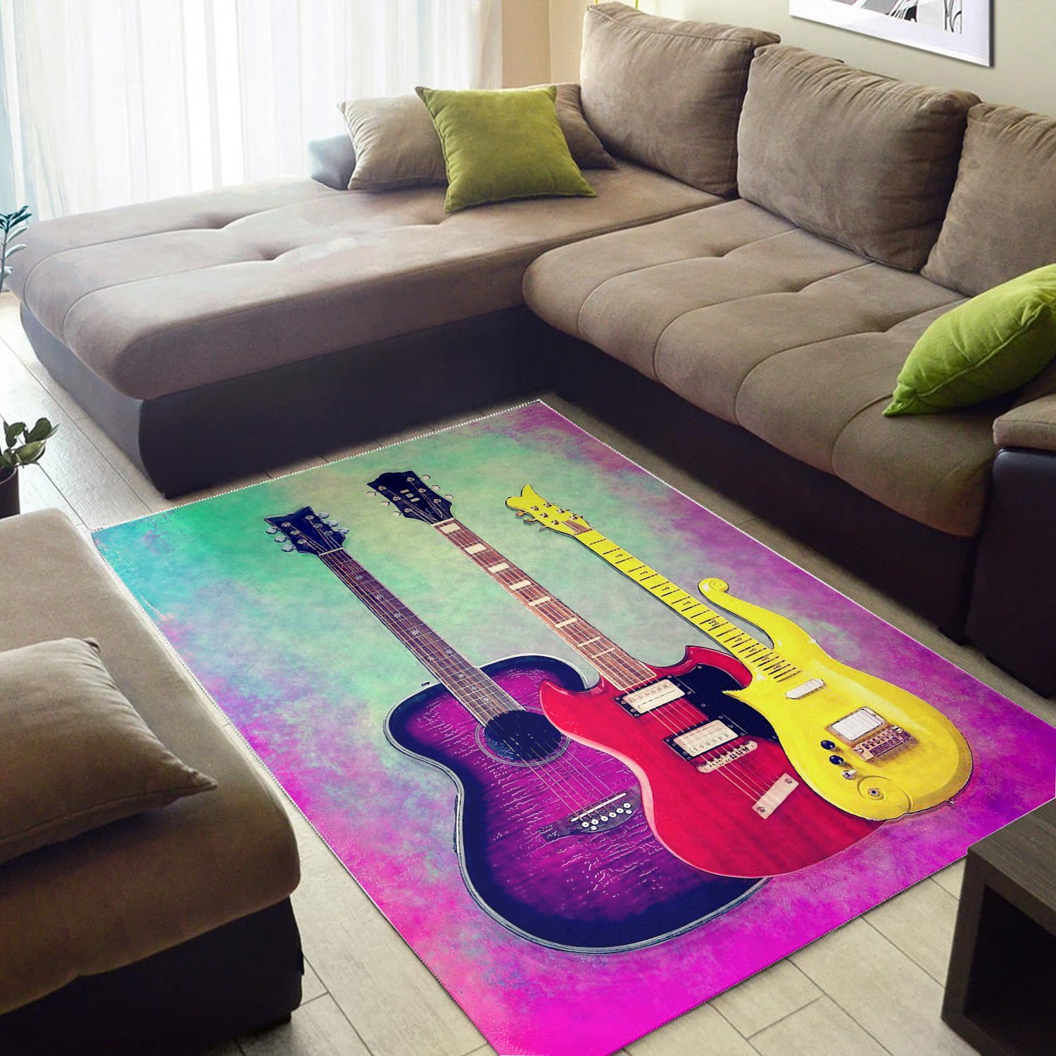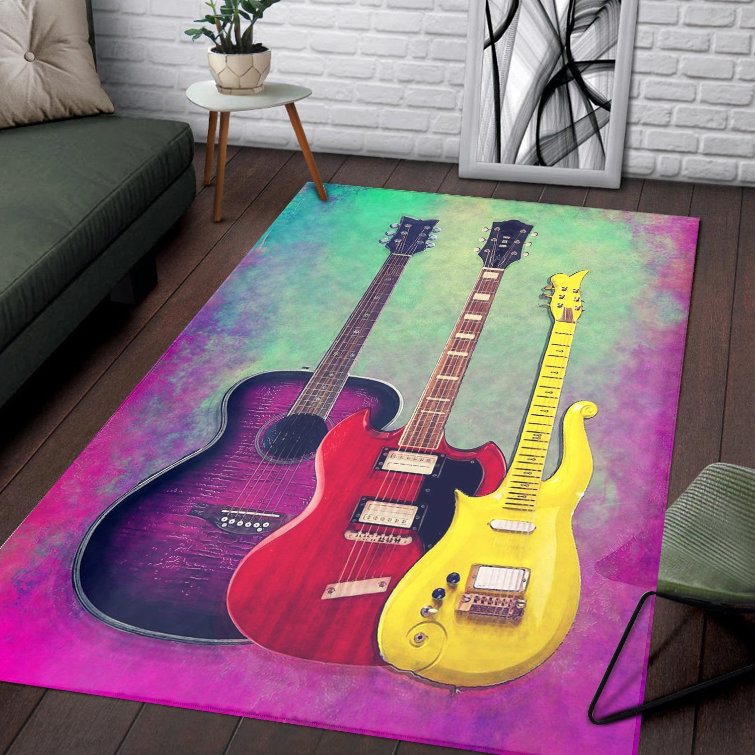 Three Guitars Instrument Area Rug, Bedroom, Home Decor