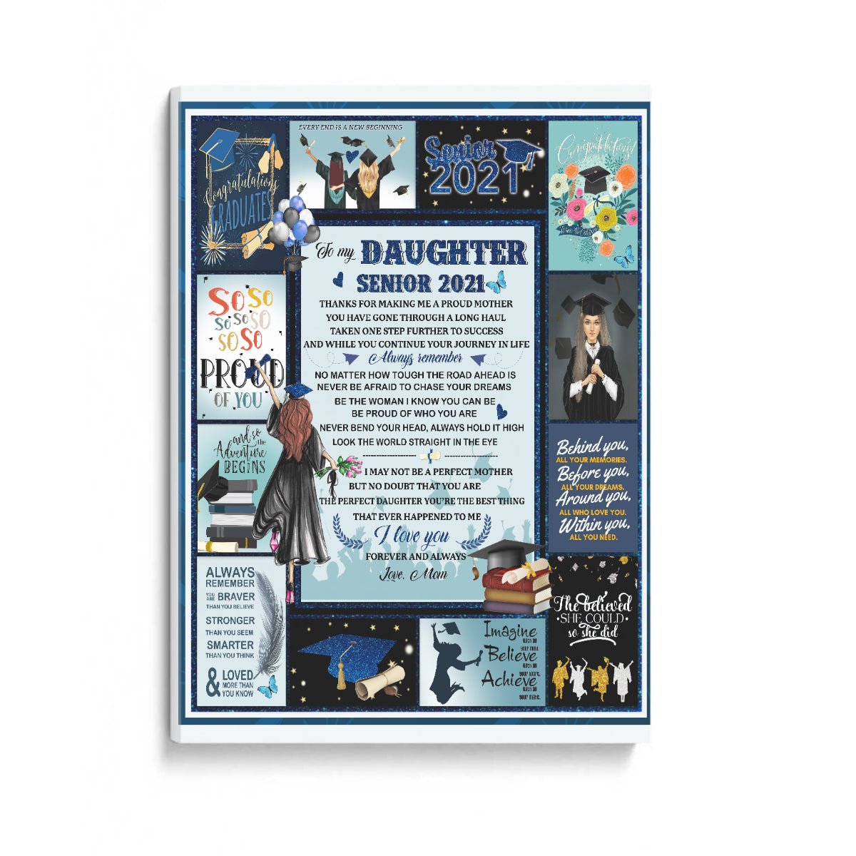 To My Daughter, Senior 2021, Happy Graduation, I Am So Proud Of You Poster Canvas And Quilt Blanket, Home Decor