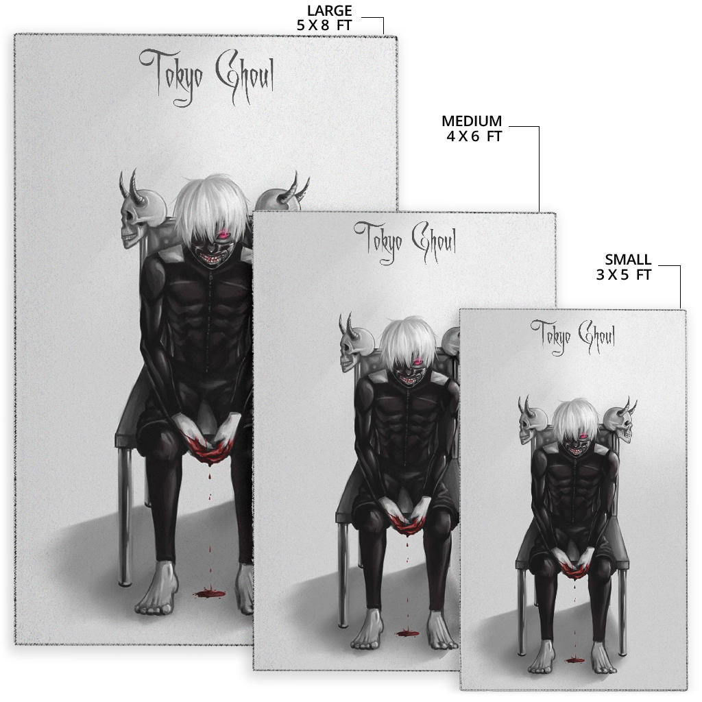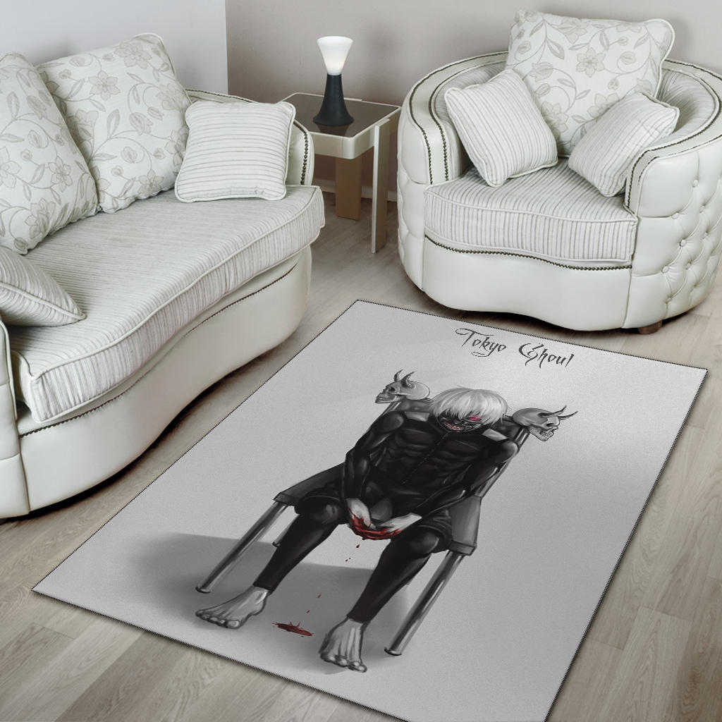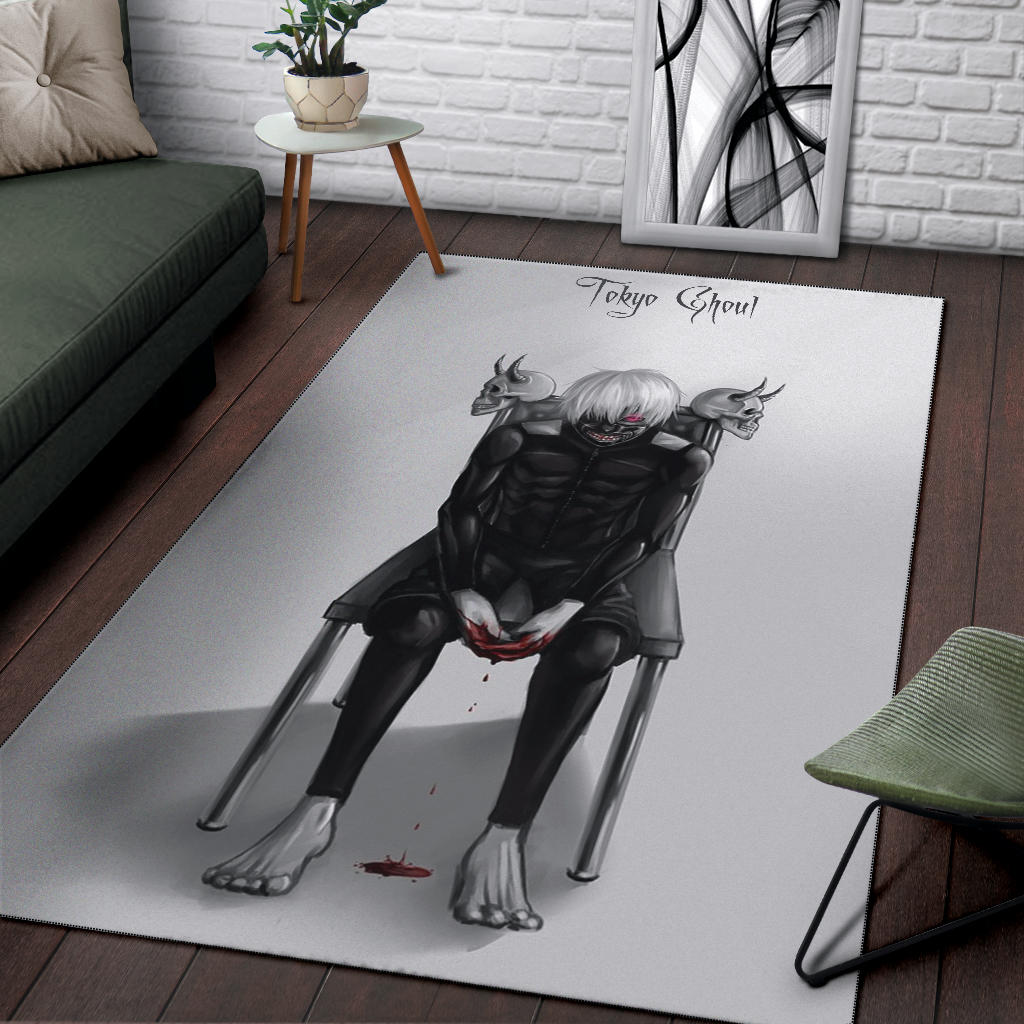 Tokyo Ghoul Anime Area Rug – Ken Kaneki Bloody Hand Sitting On Skull Chair Rugs Home Decor