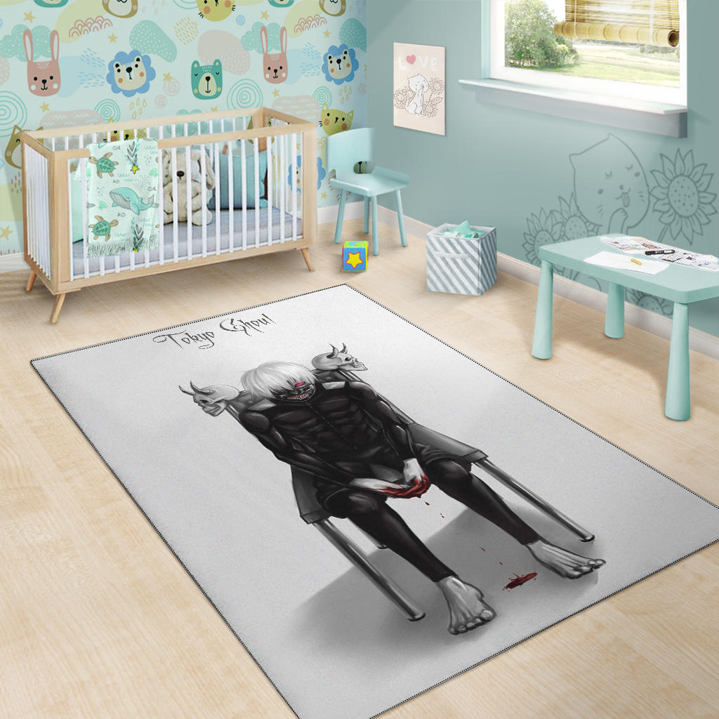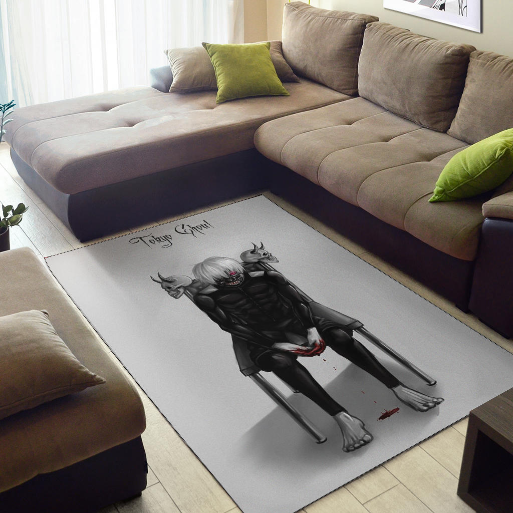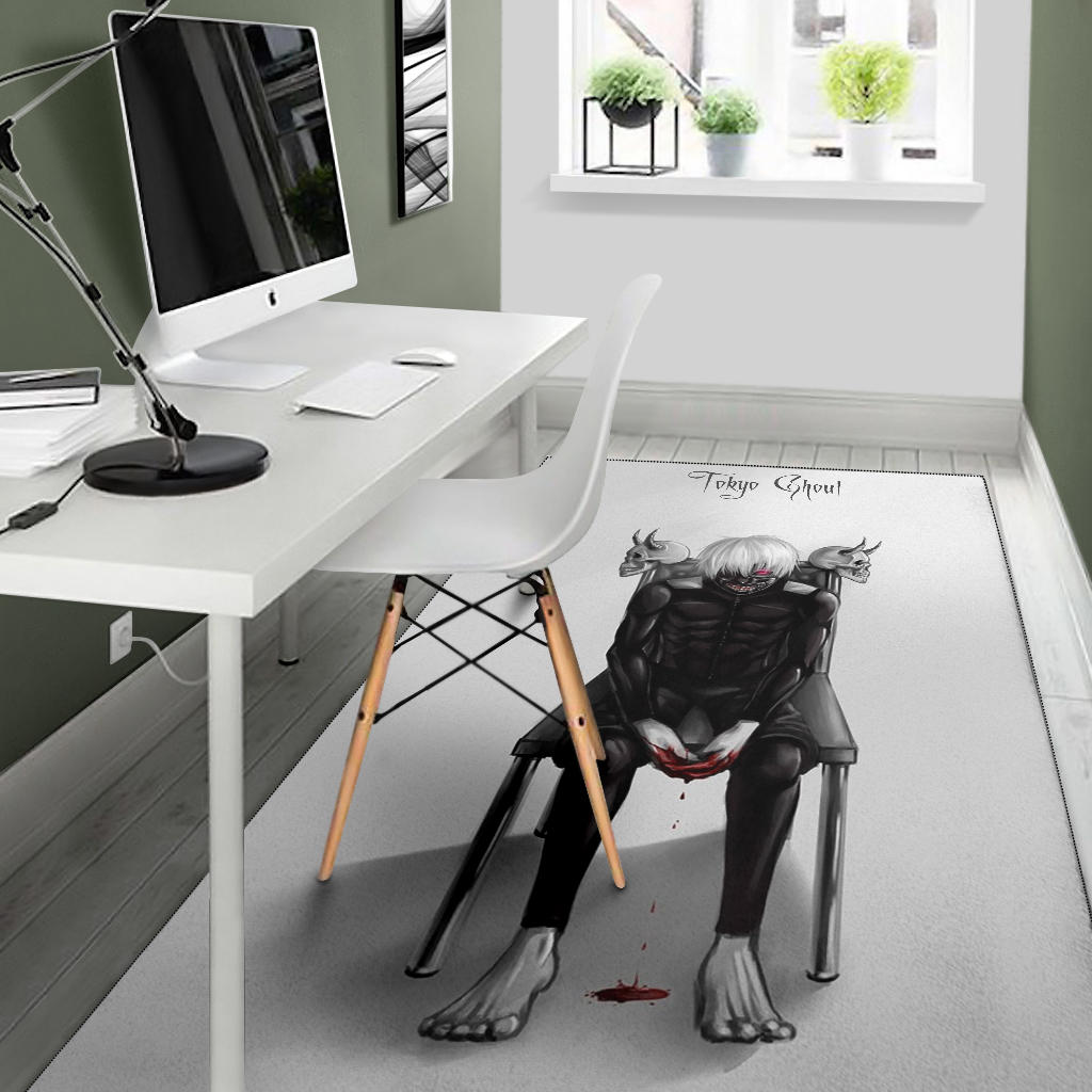 Tokyo Ghoul Anime Area Rug – Ken Kaneki Bloody Hand Sitting On Skull Chair Rugs Home Decor