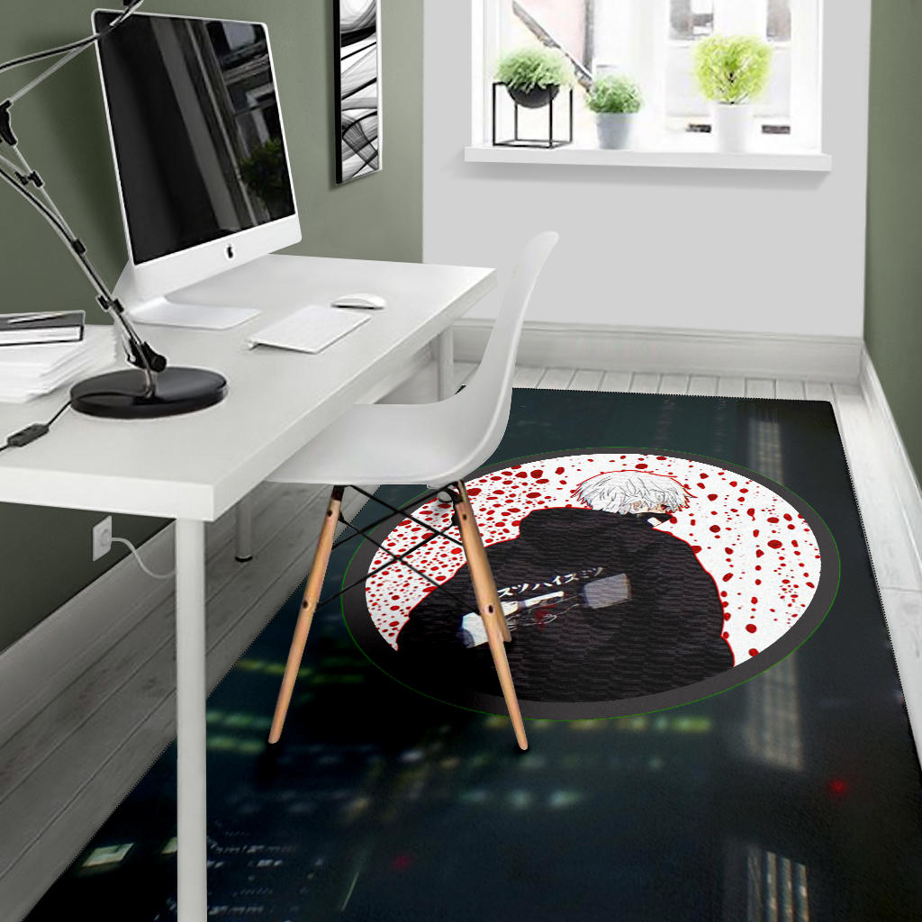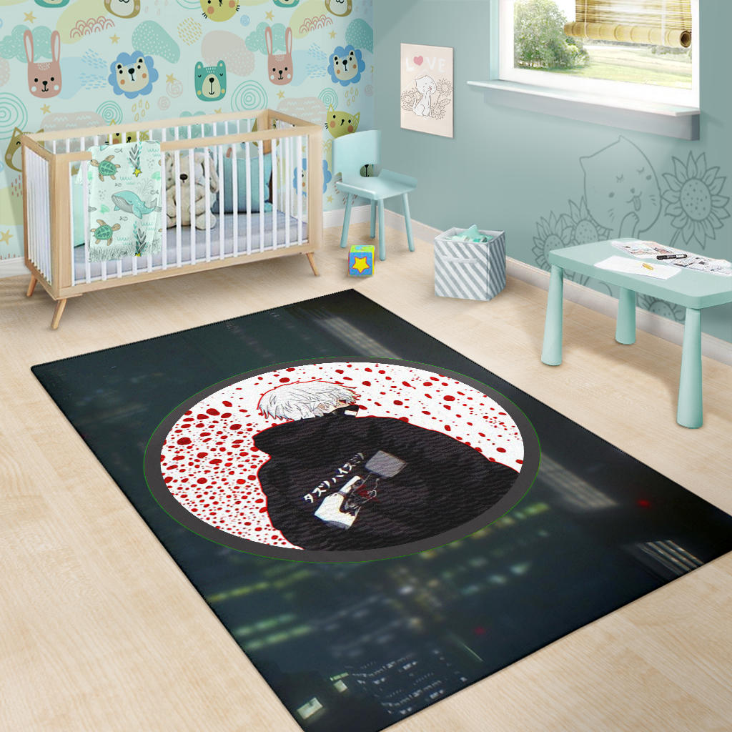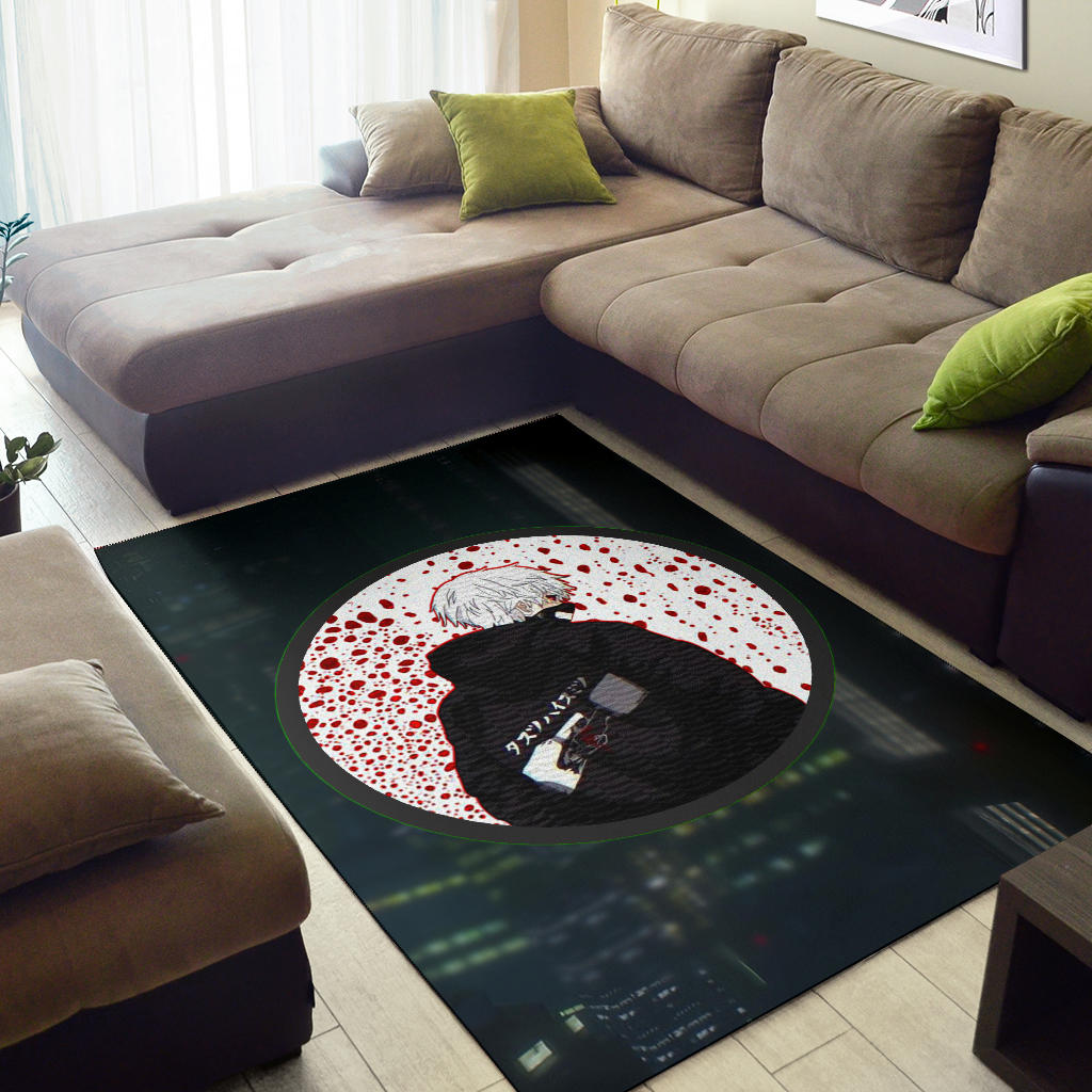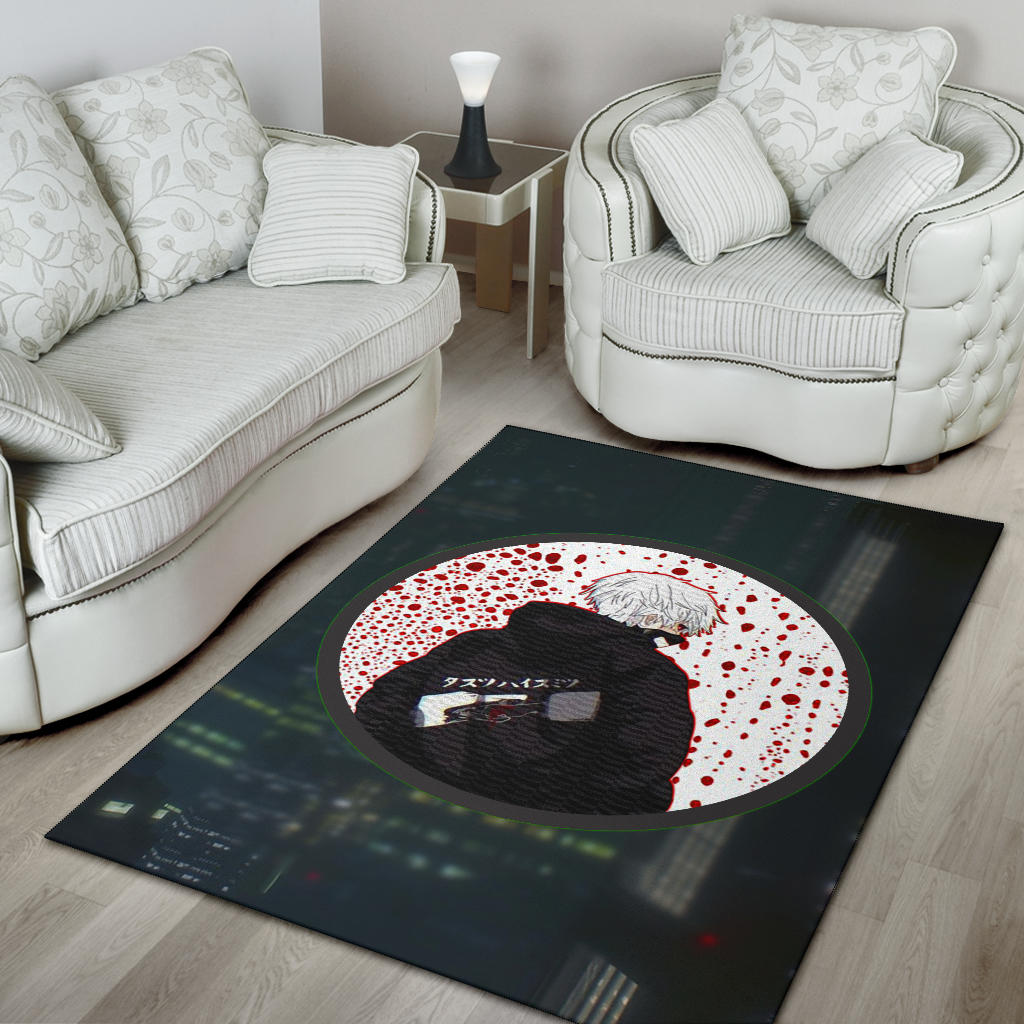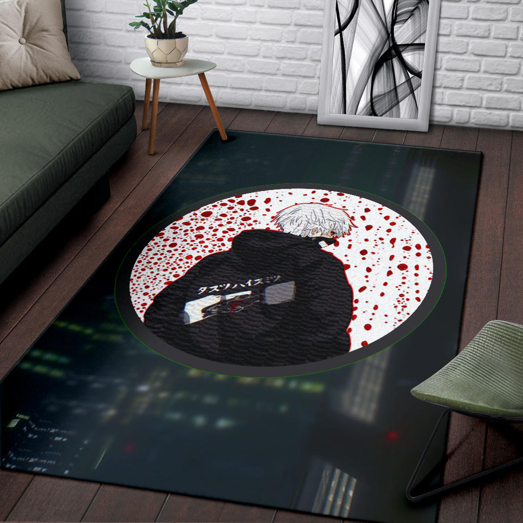 Tokyo Ghoul Anime Area Rug – Ken Kaneki Looking Back Bloody Wall Rugs Home Decor