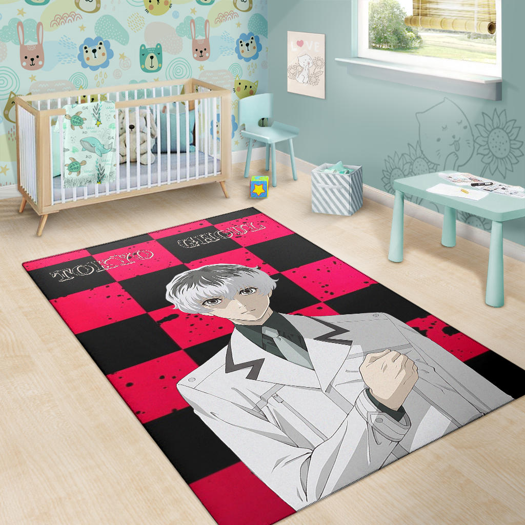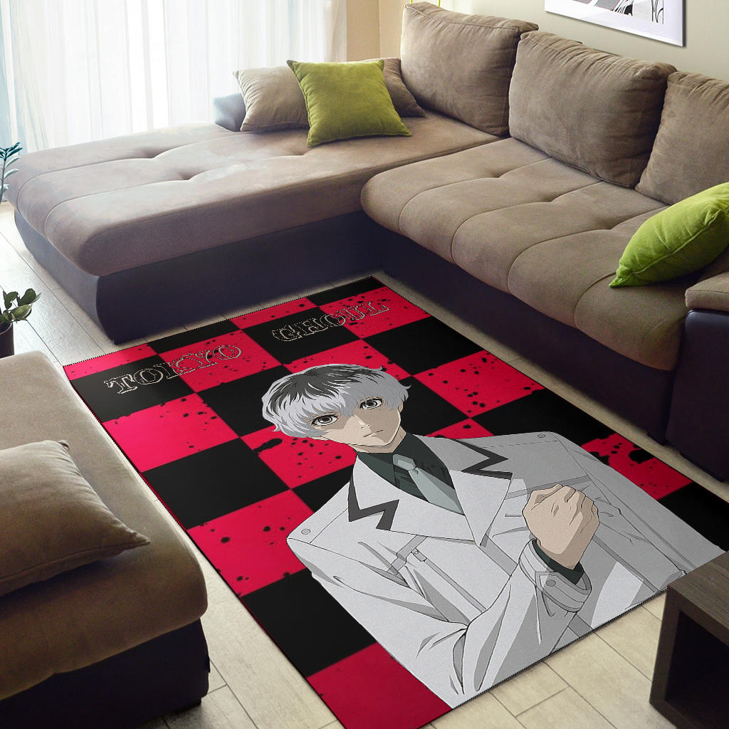 Tokyo Ghoul Anime Area Rug – Prince Ken Kaneki Wearing White Suit Rugs Home Decor